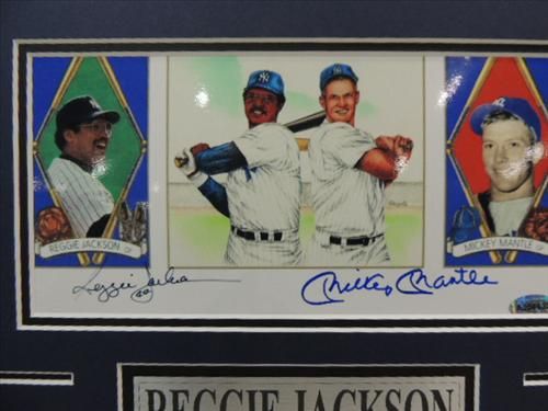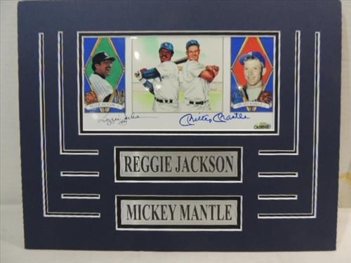 14X11 BASEBALL PRINT 2 AUTOGRAPHS REGGIE JACKSON & MICKEY MANTLE. INCLUDES COA FROM MFP AND THERE IS A STICKER # A204633. AS SHOWN. VIEW PICTURE FOR DETAIL. PLEASE BE ADVISED, AND INFORMED REGARDING SIGNATURES OR AUTOGRAPHS THAT WE SELL AT AUCTION: WE ARE NOT AUTHENTICATORS, AND WE DO NOT AUTHENTICATE, OR VALIDATE ANY AUTOGRAPHS OR SIGNATURES THAT WE OFFER AT AUCTION. SOME AUTOGRAPHS OR SIGNATURES MAY COME WITH AN AUTHENTICATION FROM ANY ONE OF LITERALLY HUNDREDS OF AUTHENTICATORS ACROSS THE COUNTRY, AND AROUND THE WORLD. WE DO NOT ENDORSE ANY AUTHENTICATOR, NOR DO WE GUARANTEE THAT ANY AUTOGRAPH OR SIGNATURE IS AUTHENTIC, OR THAT IT WILL PASS AUTHENTICATION BY ANY AUTHENTICATOR. ALL AUTOGRAPHS OR SIGNATURES ARE SOLD