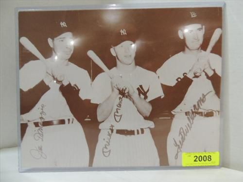 14X11 BASEBALL PRINT OF JOE DIMAGGIO, MICKEY MANTLE & TED WILLIAMS. SIGNATURES ARE PART OF THE PRINT NOT ORIGINALS. AS SHOWN. VIEW PICTURE FOR DETAIL.