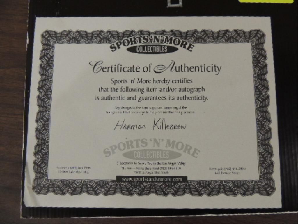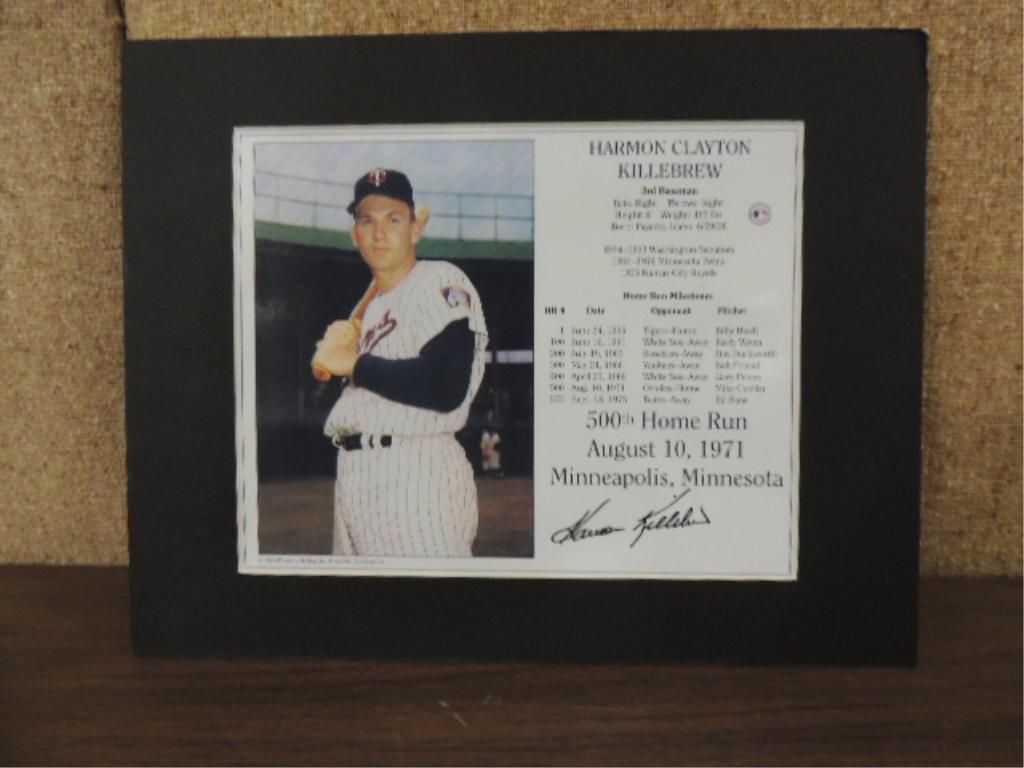 14X11 MATTED BASEBALL PHOTO AUTOGRAPHED HARMON KILLEBREW. INCLUDES COA FROM SPORTS N MORE. AS SHOWN. VIEW PICTURE FOR DETAIL. PLEASE BE ADVISED, AND INFORMED REGARDING SIGNATURES OR AUTOGRAPHS THAT WE SELL AT AUCTION: WE ARE NOT AUTHENTICATORS, AND WE DO NOT AUTHENTICATE, OR VALIDATE ANY AUTOGRAPHS OR SIGNATURES THAT WE OFFER AT AUCTION. SOME AUTOGRAPHS OR SIGNATURES MAY COME WITH AN AUTHENTICATION FROM ANY ONE OF LITERALLY HUNDREDS OF AUTHENTICATORS ACROSS THE COUNTRY, AND AROUND THE WORLD. WE DO NOT ENDORSE ANY AUTHENTICATOR, NOR DO WE GUARANTEE THAT ANY AUTOGRAPH OR SIGNATURE IS AUTHENTIC, OR THAT IT WILL PASS AUTHENTICATION BY ANY AUTHENTICATOR. ALL AUTOGRAPHS OR SIGNATURES ARE SOLD