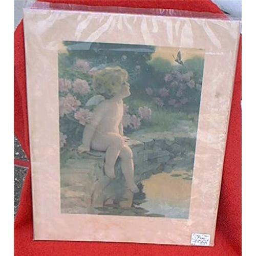 This is an original Bessie Pease Gutmann print titled "The Butterfly". It is unframed and the outside has a bit of discoloration, soiling and a few tiny tears but the center is in good condition. It would be wonderful framed. It is signed Bessie Pease Gutmann in the bottom left corner and on the right hand at the bottom of the print is 632 Copyright Gutmann & Gutmann, N.Y. and below that Made in USA. It is 14" wide and 17" high. A really precious print as I think they all are.