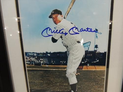 14X17 FRAMED BASEBALL PHOTO AUTOGRAPH MICKEY MANTLE. NO COA. AS SHOWN. VIEW PICTURE FOR DETAIL. PLEASE BE ADVISED, AND INFORMED REGARDING SIGNATURES OR AUTOGRAPHS THAT WE SELL AT AUCTION: WE ARE NOT AUTHENTICATORS, AND WE DO NOT AUTHENTICATE, OR VALIDATE ANY AUTOGRAPHS OR SIGNATURES THAT WE OFFER AT AUCTION. SOME AUTOGRAPHS OR SIGNATURES MAY COME WITH AN AUTHENTICATION FROM ANY ONE OF LITERALLY HUNDREDS OF AUTHENTICATORS ACROSS THE COUNTRY, AND AROUND THE WORLD. WE DO NOT ENDORSE ANY AUTHENTICATOR, NOR DO WE GUARANTEE THAT ANY AUTOGRAPH OR SIGNATURE IS AUTHENTIC, OR THAT IT WILL PASS AUTHENTICATION BY ANY AUTHENTICATOR. ALL AUTOGRAPHS OR SIGNATURES ARE SOLD