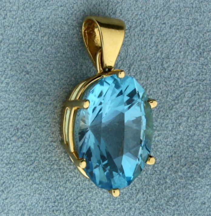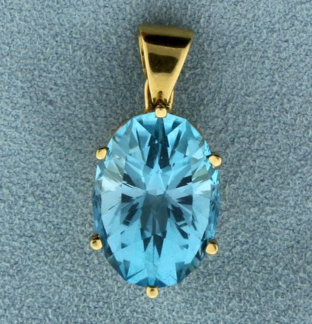 In 14k yellow gold, containing an 18x13mm oval gemstone. 1 inch long with bale. 6.6g.