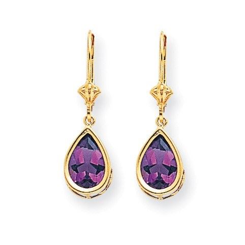 14k 10x7 mm Pear Amethyst Leverback Earrings