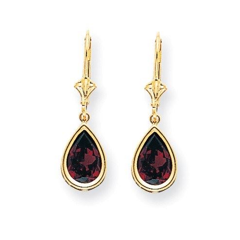14k 10x7 mm Pear Garnet Leverback Earrings