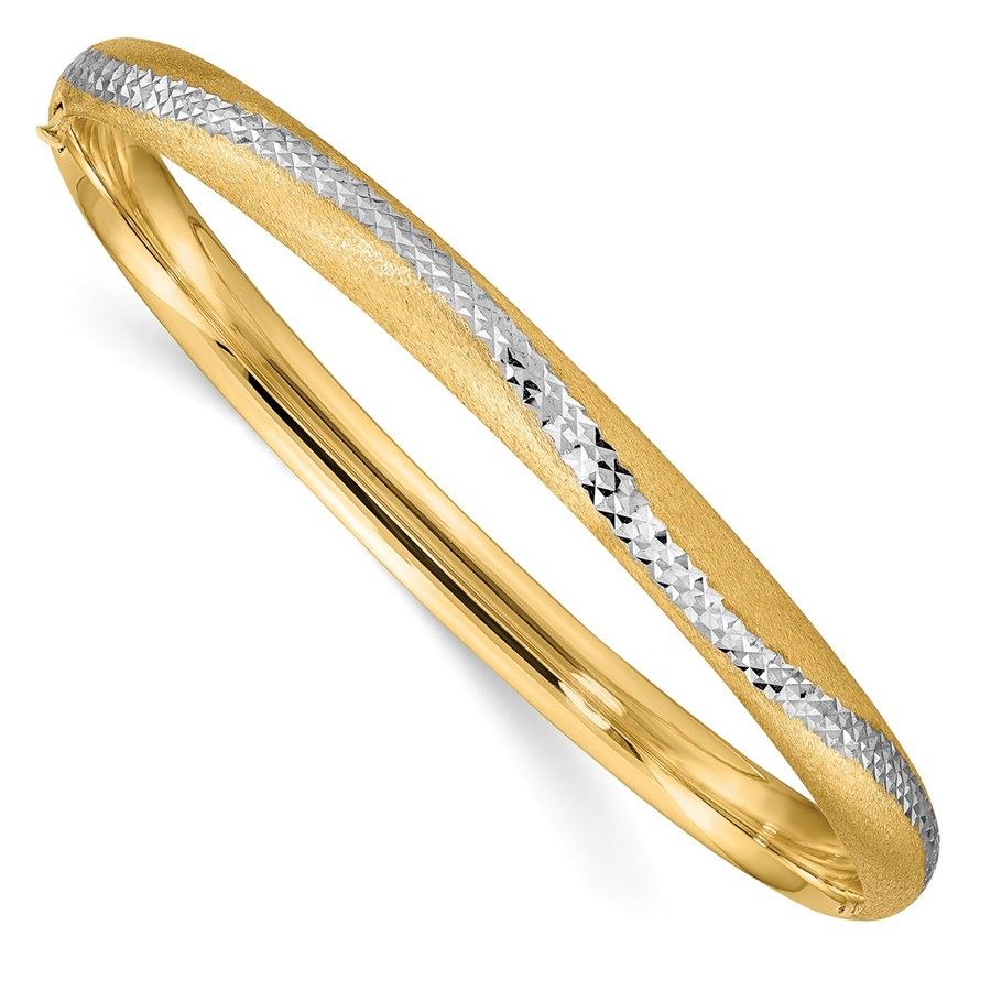 14k 4/16 w/White Rhodium Diamond-Cut Snake Bangle - 7.5 in.