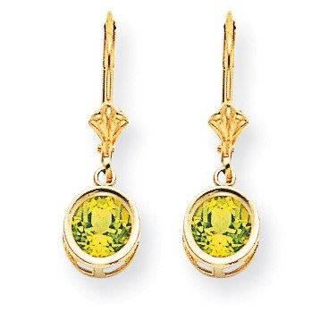 One piece 14k 6 mm Peridot Leverback Earrings