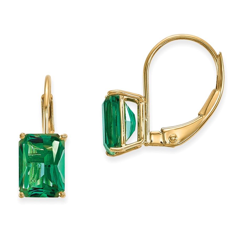 14k 7x5 mm Emerald Cut Mount St. Helens Leverback Earrings