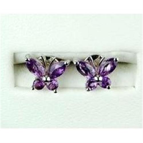 This pair of 14k White Gold Earrings features a BUTTERFLY set with 4 AMETHYSTS. There are 2 Marquise Cut AMETHYSTS and 2 Round AMETHYSTS. The Earrings have 14k White Gold post style backs for pierced ears.