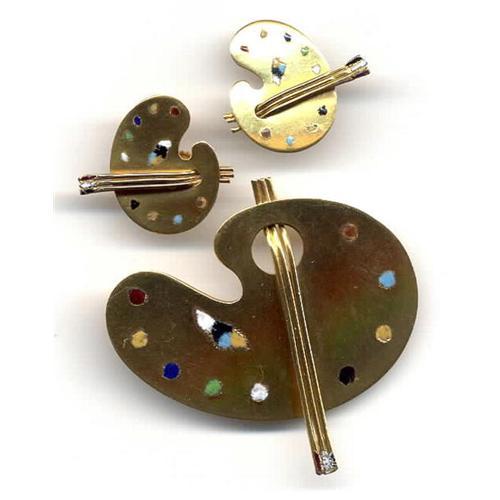 <tr><td>Title:14k Artistic Enamel Brooch and Earrings </td></tr>