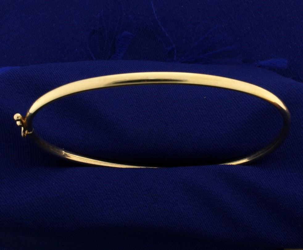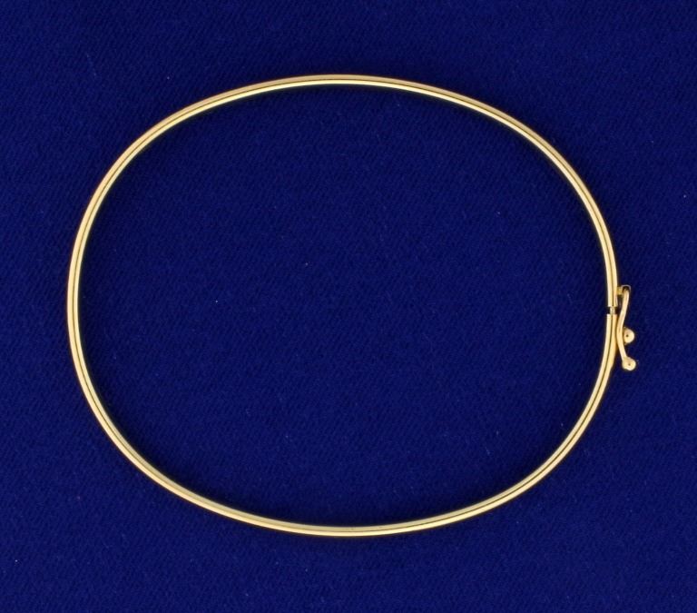 In n14k yellow gold. 2.5 inches in diameter with safety clasp. 4.2g.