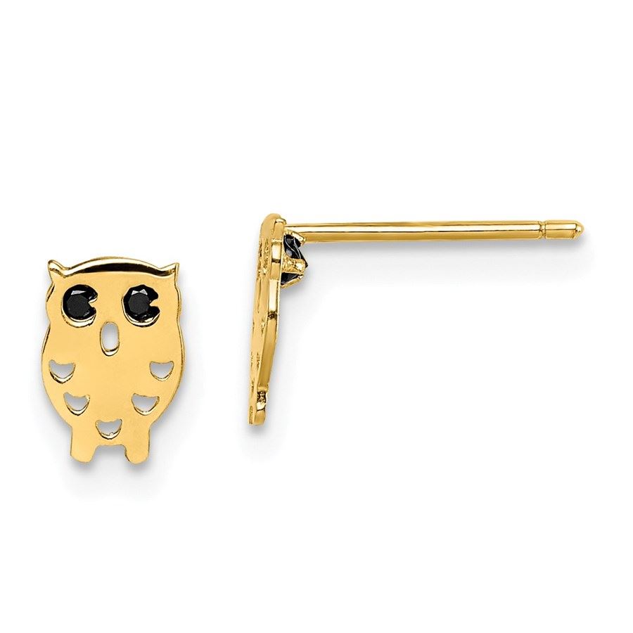 14k Black Cubic Zirconia Owl Post Earrings - 42 mm