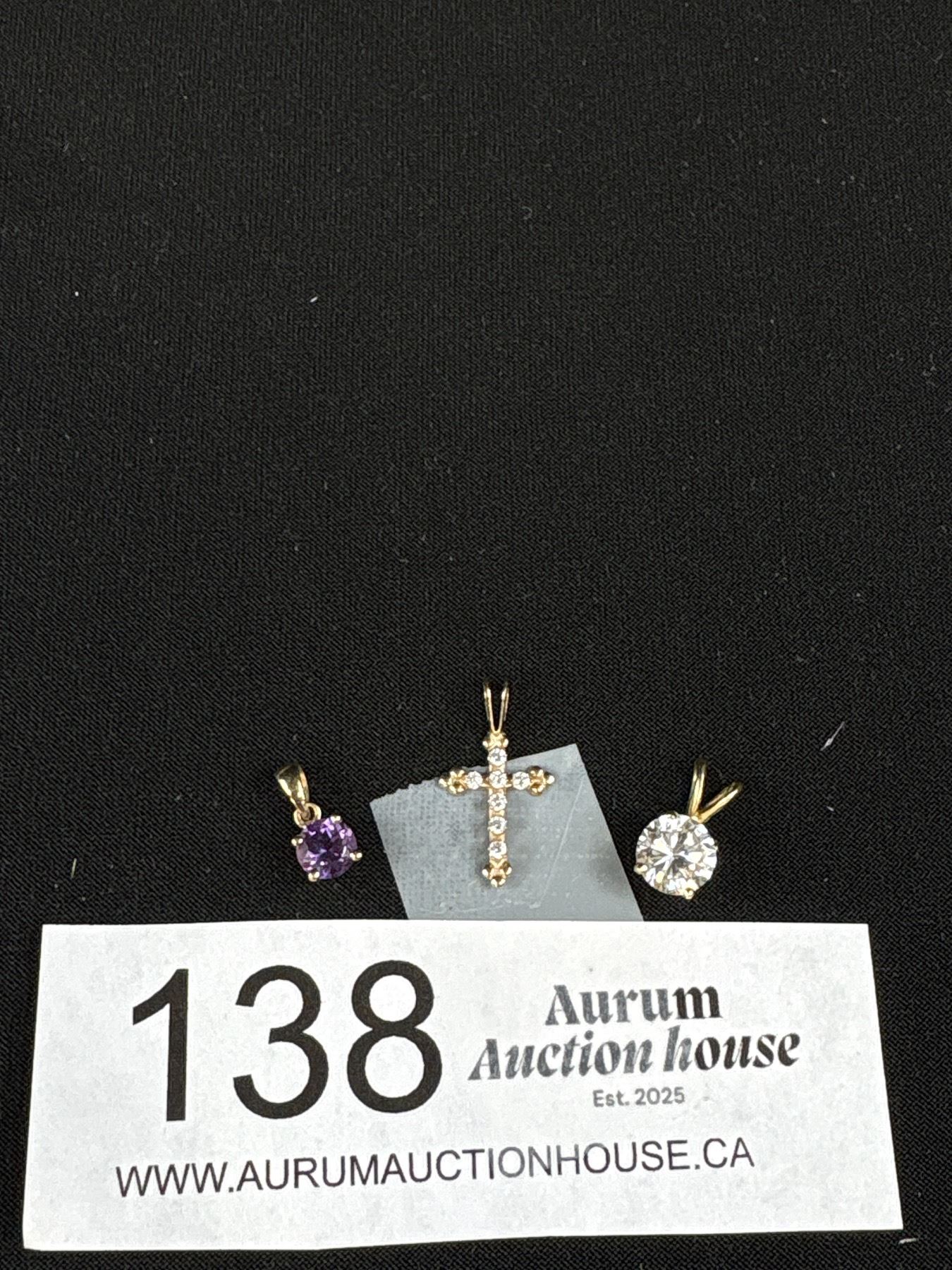 14k CZ, 10k (417) Amethyst and 10K CZ Cross Pendant Lot