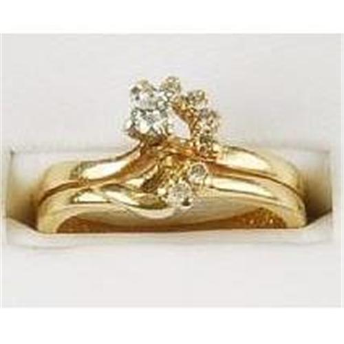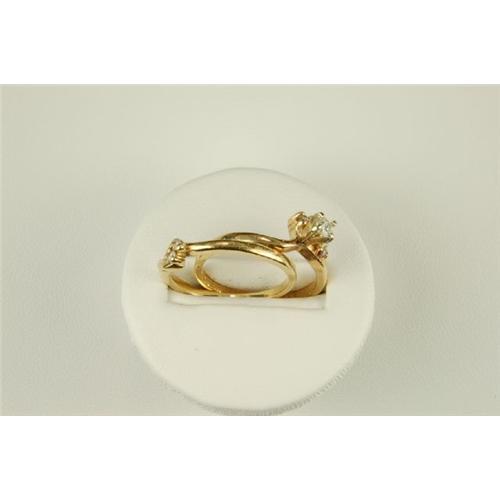 14k Yellow Gold Wedding Set featuring a 14k Diamond Engagement Ring with a matching 14k Diamond Wedding Band. The Engagement Ring features a .15 Carat 'Sparkling' Diamond with 5 smaller Diamonds to aside. The matching Wedding Band is set with 2 more Diamonds. The Diamond Total Weight = .25 Carats! The Wedding Set is a Size 6 1/4 and I can resize it for you.