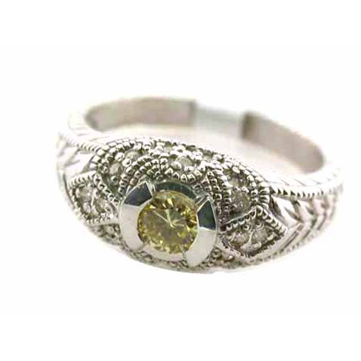14k Gold Ring with Diamonds. Center Stone - 0.23 ct, Round cut and Accent Diamond - 0.10 ct, Round cut. The ring size is 8.75 and weighs 5.3 grams