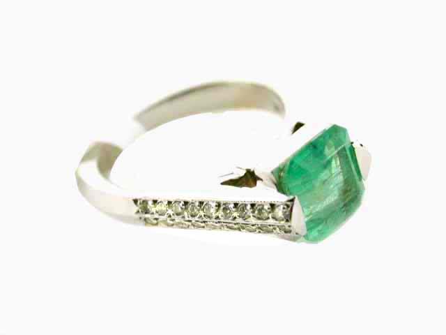 14k White Gold Ring with Emerald - 1.76 ct and with Diamond Accent - 0.26 ct, Round cut. The ring size is 6.75 and weighs 5.5 grams