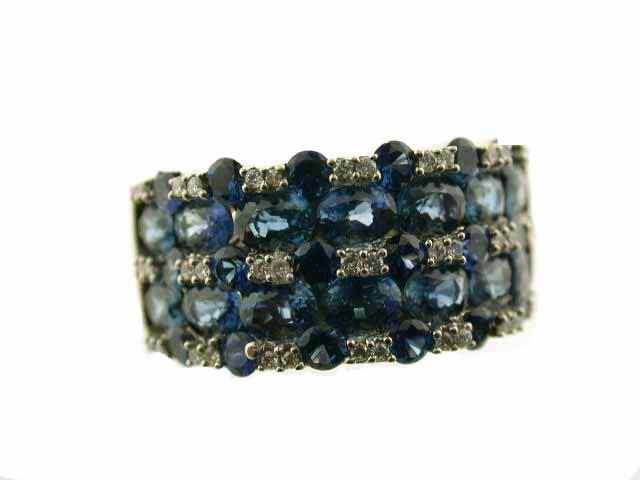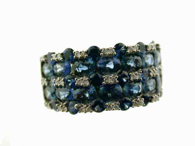 14k White Gold Ring with Diamonds - 0.52 carat, G color, VS clarity and blue Sapphire - 6.72 carats. The ring size is 7.25 and the top Width is 11 mm