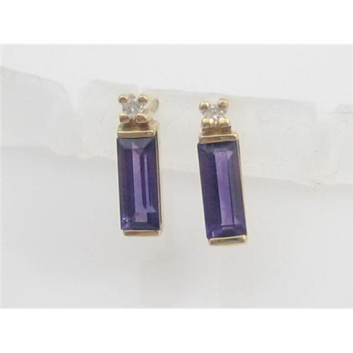 14k Yellow Gold Earrings each featuring an Emerald Cut GENUINE AMETHYST with a small DIAMOND as accent. The Earrings have 14k Gold Post style backs for pierced ears.