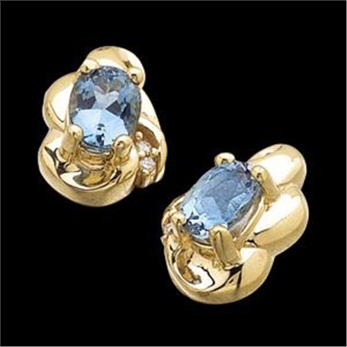 14k Yellow Gold Earrings each featuring a GENUINE Oval AQUAMARINE.