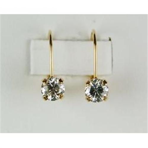 This pair of 14k Gold Cubic Zirconia Earrings are 'Brand New'. They are SOLID 14k Yellow Gold and they feature a 14k Gold Earwire with lever backs. Each earring is set with a CZ, and the Total Weight = ONE CARAT! And they TRULY look like Diamonds!