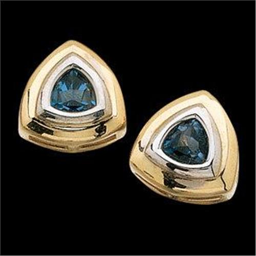 Beautiful 14k Yellow Gold Earrings each featuring a Trillion Cut Faceted LONDON BLUE TOPAZ = ONE CARAT!