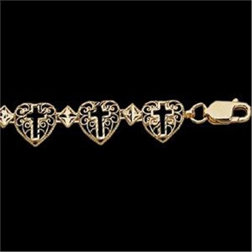 14k Yellow Gold Cross Heart Bracelet with beautiful filigree goldwork. This lovely Bracelet measures 7 1/2 " long.