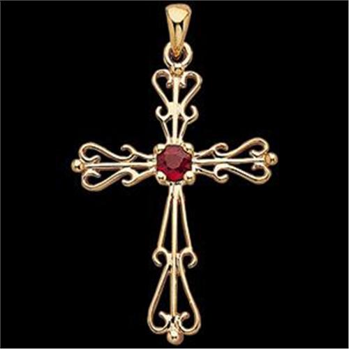 14k Yellow Gold Cross Pendant featuring a Genuine round RUBY.