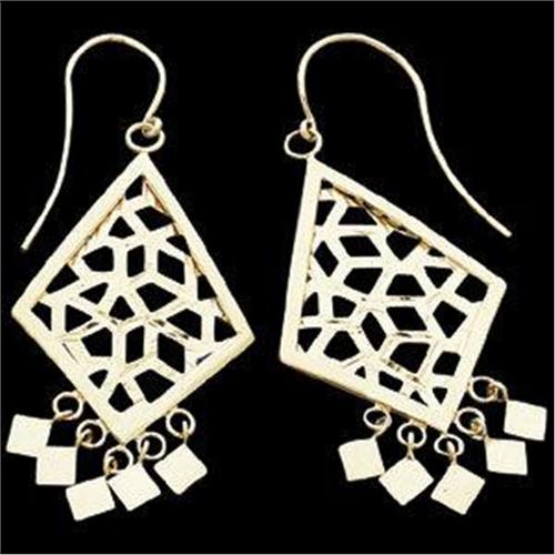 These beautiful 14k Yellow Gold Earrings have a Diamond shape with goldwork and 6 gold dangles at the bottom of each earring.