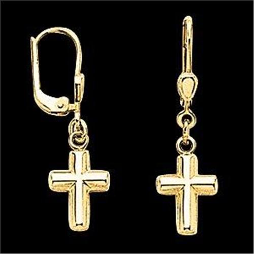 14k Yellow Gold Cross Earrings with a slight dangle. They measure 12 x 9mm.