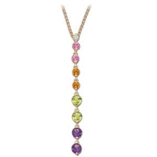 This terrific Necklace is 14k Yellow Gold and it features a dangle set with DIAMONDS, PERIDOTS, AMETHYSTS, CITRINES and PINK TOURMALINES. The chain is, of course, 14k Yellow Gold. This Necklace will look terrific with your new spring fashions!