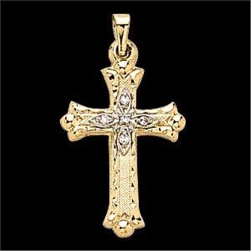 14k Yellow Gold Religious Pendant featuring a Gold Cross set with 5
