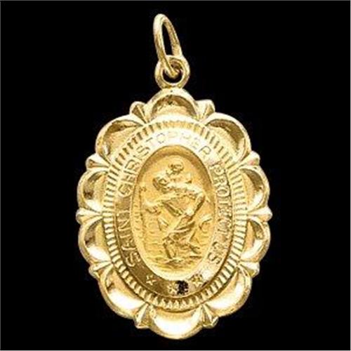 This 14k SOLID GOLD Religious Pendant, ST. CHRISTOPHER MEDAL, has extraordinary detail work. This Yellow Gold St. Christopher Medal measures 1" x 3/4" and has a good size bail to pass a chain thru.