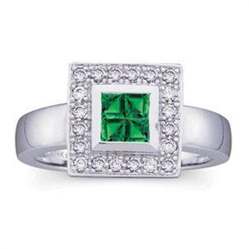 Beatufiul 14k White Gold ring featuring a cluster of 4 Genuine EMERALDS surrounded by 20 Diamonds. This beautiful ring is a size 6 and I can easily resize it for you.