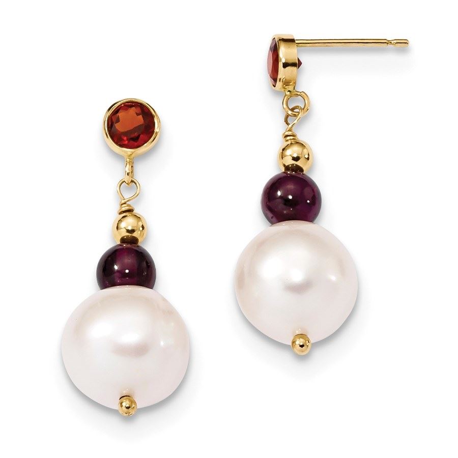 14k Garnet & 9-10 mm White Near Round C Pearl Leverback Earrings