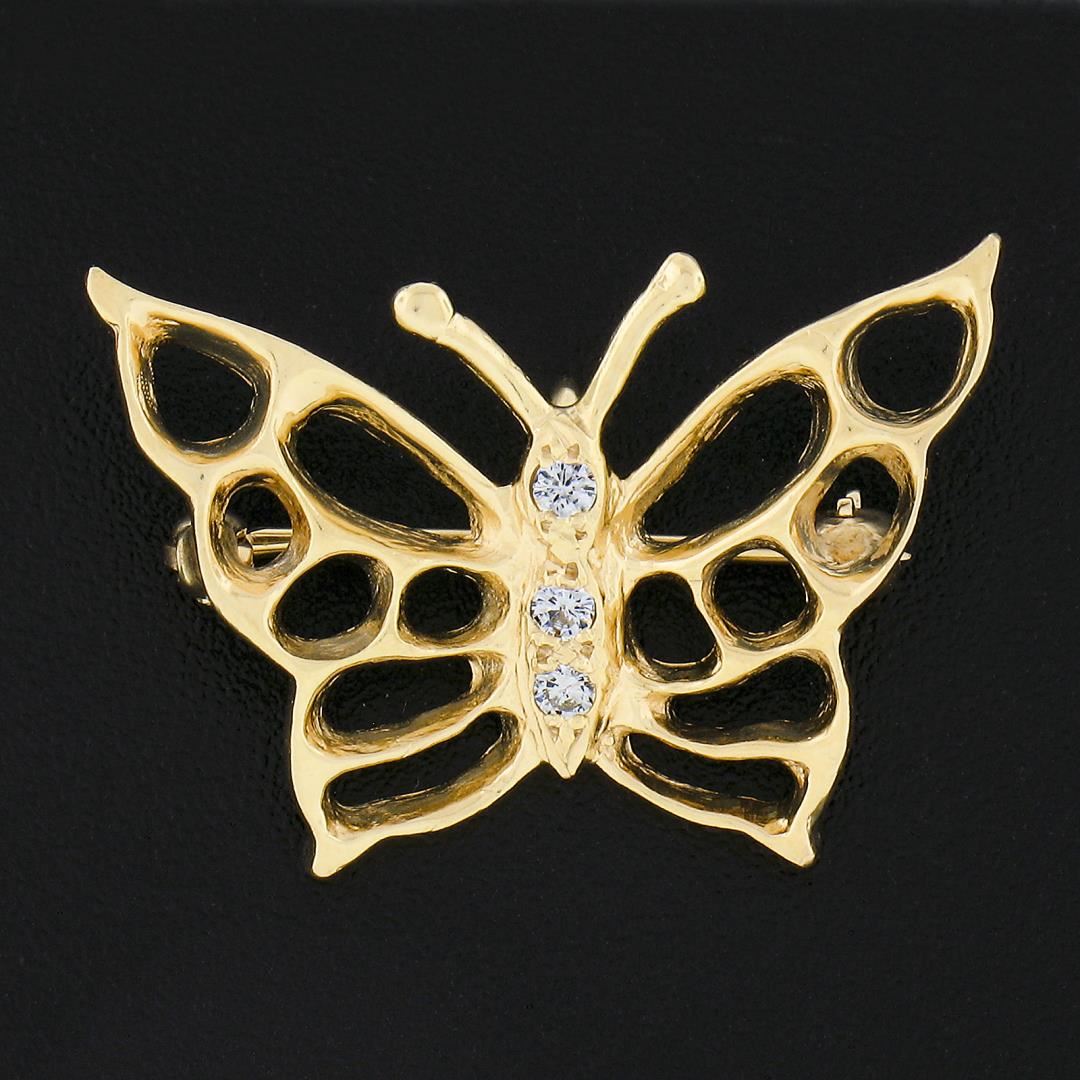 14k Gold 0.09 ctw Diamond Polished Butterfly w/ Open Work Wings Brooch Pin Penda
