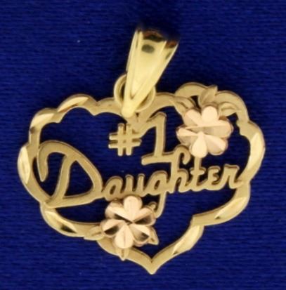 In 14k yellow and rose gold, 3/4" long with bale. 0.9g.