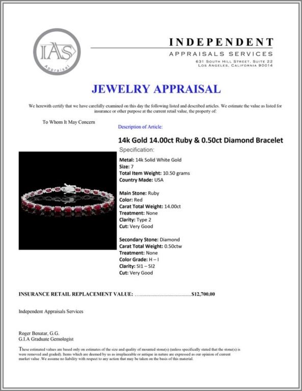 Regarding Appraised Jewelry and Loose Stones - Auctionfarm sends them out to a third party for Retail Replacement Value Appraisals, which are the most common. These types of evaluations are written for insurance needs. This would be the cost to replace the jewelry with an item of equal quality and kind, considered to be the current market price or the replacement value. This type of appraisal is done to protect you in the event of damage or loss of a valuable item. Our appraisals are conducted by independent 3rd Party appraisal firms that utilizes Certified GIA Gemologist. Appraisals should be used for verification of gemstone and/or metal weight, size, and grade only, not actual value. Appraisal value should be considered for insurance purposes only, not actual value, as price varies greatly from retail locations thru out the world. Items should not be purchased with the expectation to resell for appraisal price, or for profit.