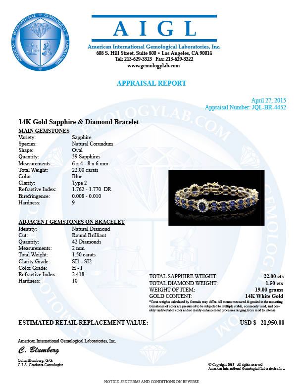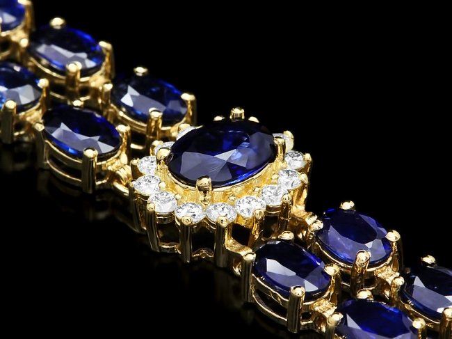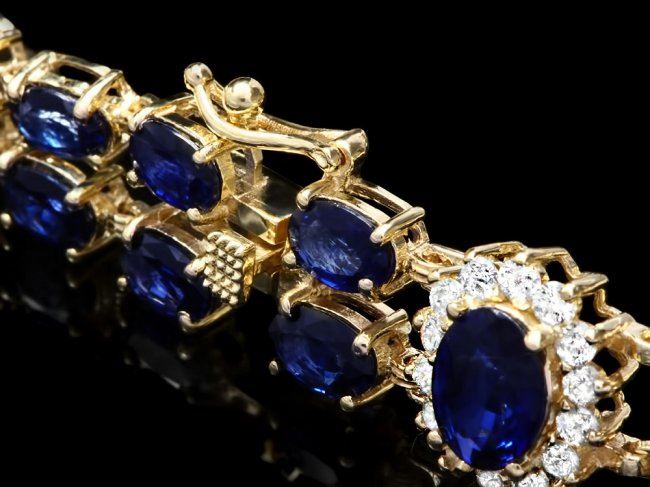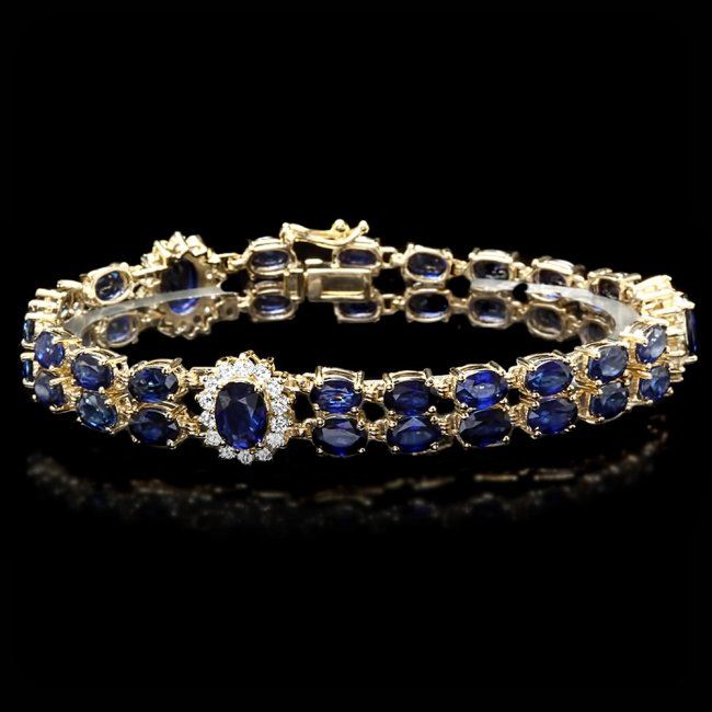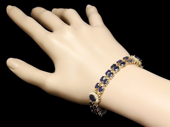 Retail: $21,850.00 ****** 14k Gold 22ct Sapphire 1.50ct Diamond Bracelet ****** Metal: 14k Solid Yellow Gold / Size: 7 / Total Item Weight: 19 grams / Country Made: United States / / Main Stone: Sapphire / Color: Blue / Carat Total Weight: 22 / Treatment: Heating / Clarity: Type 2 / Cut: Very Good / / Secondary Stone: Diamond / Carat Total Weight: 1.50 / Treatment: None / Color Grade: H - I / Clarity: SI1 - SI2 / Cut: Very Good /