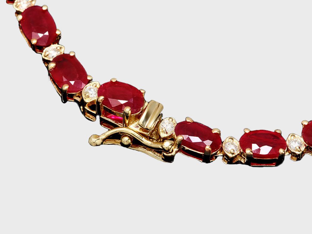 : 14k Yellow Gold / Total Item: 20.01 grams / Country Made: United States / / Main Stone: Ruby / Color: Red / Carat Total: 28.01 / Treatment: None / Clarity: Type 2 / Cut: Very Good / / Secondary Stone: Diamond / Carat Total: 1.21 / Treatment: None / Color Grade: H - I / Clarity: SI1 - SI2 / Cut: Very Good /
