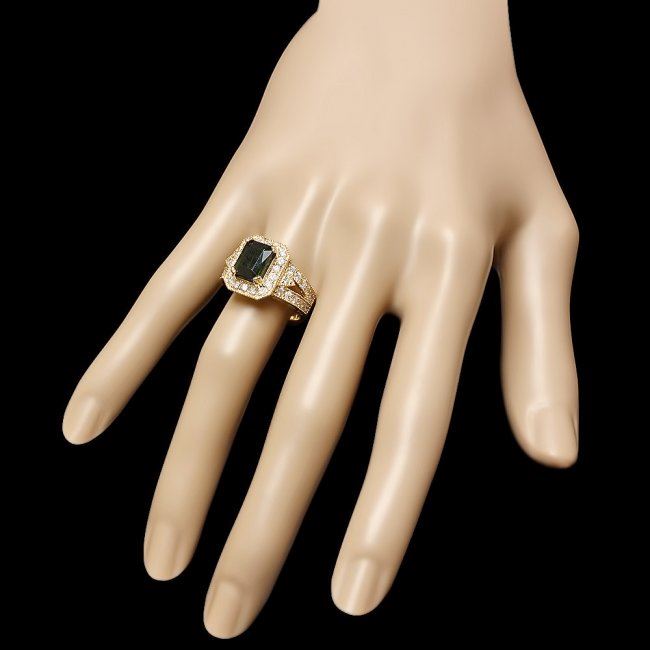 Retail: $7,850.00 ****** 14k Gold 3.00ct Tourmaline 1.20ct Diamond Ring ****** Metal: 14k Solid Yellow Gold / Size: 6.5 / Total Item Weight: 7.5 grams / Country Made: United States / / Main Stone: Tourmaline / Color: Green / Carat Total Weight: 3.00 / Treatment: None / Clarity: Type 2 / Cut: Very Good / / Secondary Stone: Diamond / Carat Total Weight: 1.20 / Treatment: None / Color Grade: H - I / Clarity: SI1 - SI2 / Cut: Very Good /