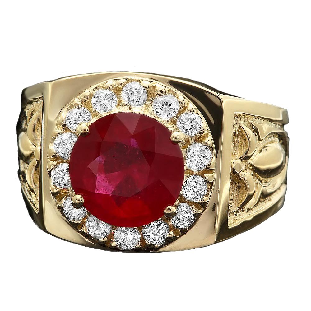: 14k Yellow Gold / Total Item: 7.01 grams / Country Made: United States / / Main Stone: Ruby / Color: Red / Carat Total: 3.01 / Treatment: Filling / Clarity: Type 2 / Cut: Very Good / / Secondary Stone: Diamond / Carat Total: 0.51 / Treatment: None / Color Grade: H - I / Clarity: SI1 - SI2 / Cut: Very Good /