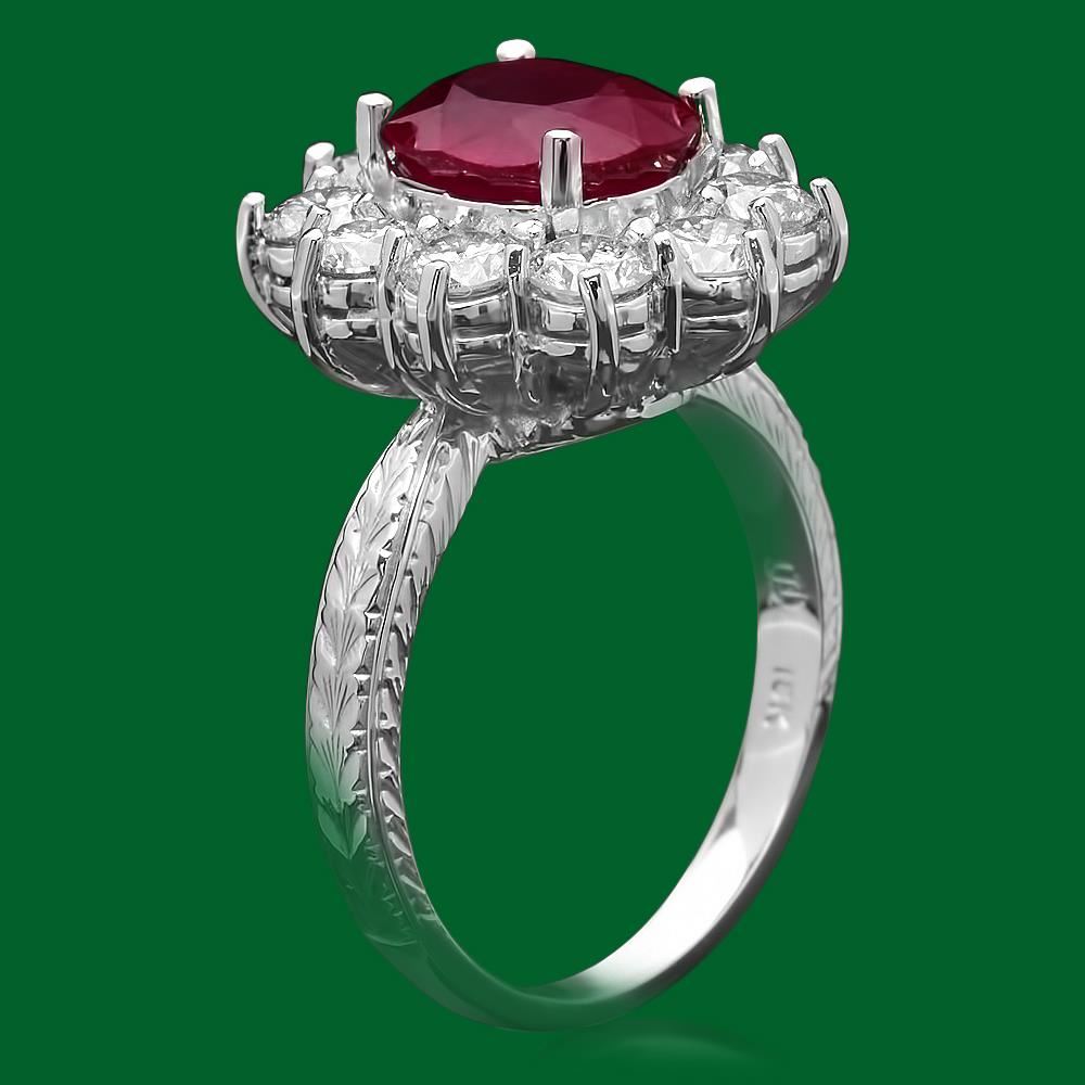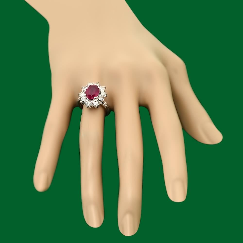 Retail: $7,800.00 ****** 14k Gold 3.21ct Ruby 2.02ct Diamond Ring ****** Metal: 14k Solid White Gold / Size: 7 / Total Item Weight: 8.0 grams / Country Made: United States / / Main Stone: Ruby / Color: Red / Carat Total Weight: 3.21 / Treatment: None / Clarity: Type 2 / Cut: Very Good / / Secondary Stone: Diamond / Carat Total Weight: 2.02 / Treatment: None / Color Grade: I - J / Clarity: SI1 - SI2 / Cut: Round Brilliant /