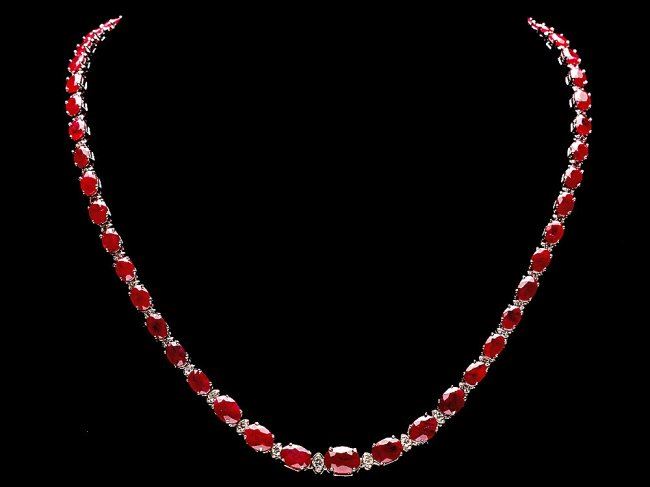 Retail: $24,500.00 ****** 14k Gold 37.00ct Ruby 1.45ct Diamond Necklace ****** Metal: 14k Solid White Gold / Size: 17 / Total Item Weight: 21.5 grams / Country Made: United States /  / Main Stone: Ruby / Color: Red / Carat Total Weight: 37.00 / Treatment: None / Clarity: Type 2 / Cut: Very Good /  / Secondary Stone: Diamond / Carat Total Weight: 1.45 / Treatment: None / Color Grade: H - I / Clarity: SI1 - SI2 / Cut: Very Good /