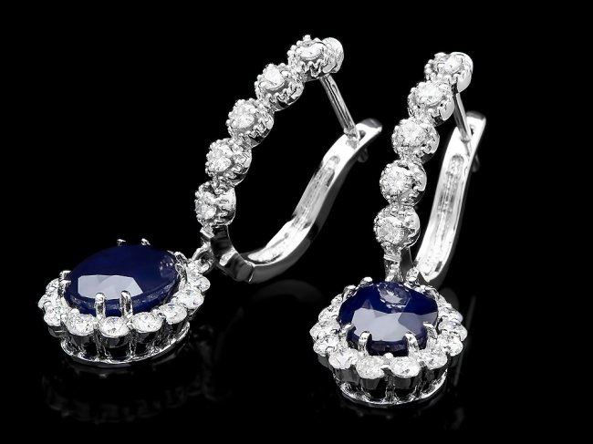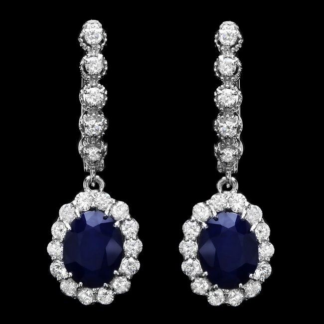 Retail: $7,600.00 ****** 14k Gold 5.00ct Sapphire 1.35ct Diamond Earrings ****** Metal: 14k Solid White Gold / Total Item Weight: 5.5 grams / Country Made: United States / / Main Stone: Sapphire / Color: Blue / Carat Total Weight: 5.00 / Treatment: Heating / Clarity: Type 2 / Cut: Very Good / / Secondary Stone: Diamond / Carat Total Weight: 1.35 / Treatment: None / Color Grade: H - I / Clarity: SI1 - SI2 / Cut: Very Good /