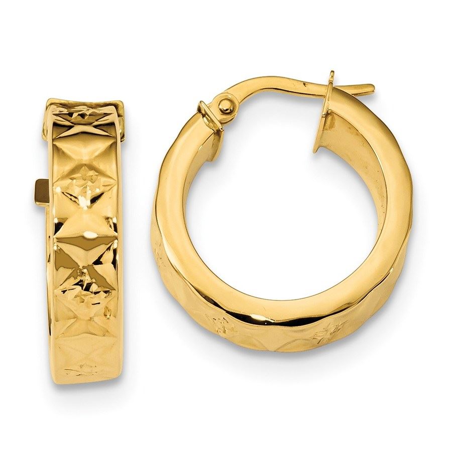 14k Gold 5.3 mm Polished & Textured Hoop Earrings