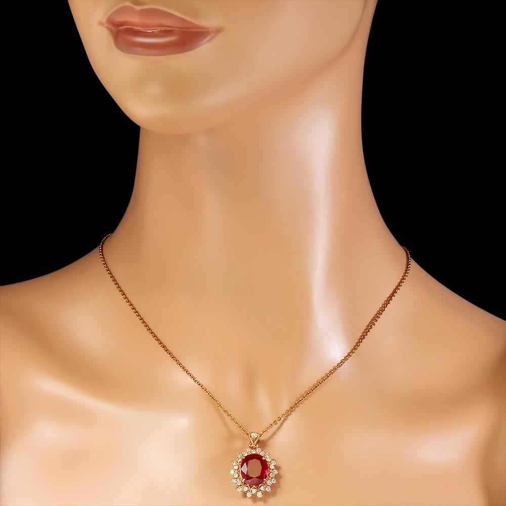 Retail: $4,800.00 ****** 14k Gold 6.48ct Ruby 0.87ct Diamond Pendant ****** Metal: 14k Solid Yellow Gold / Size: 7 / Total Item Weight: 4.7 grams / Country Made: United States / / Main Stone: Ruby / Color: Red / Treatment: None / Clarity: Type 2 / Cut: Very Good / Secondary Stone: Diamond / Carat Total Weight: 0.87 / Treatment: None / Color Grade: G - H / Clarity: SI1 - SI2 / Cut: Round Brilliant /