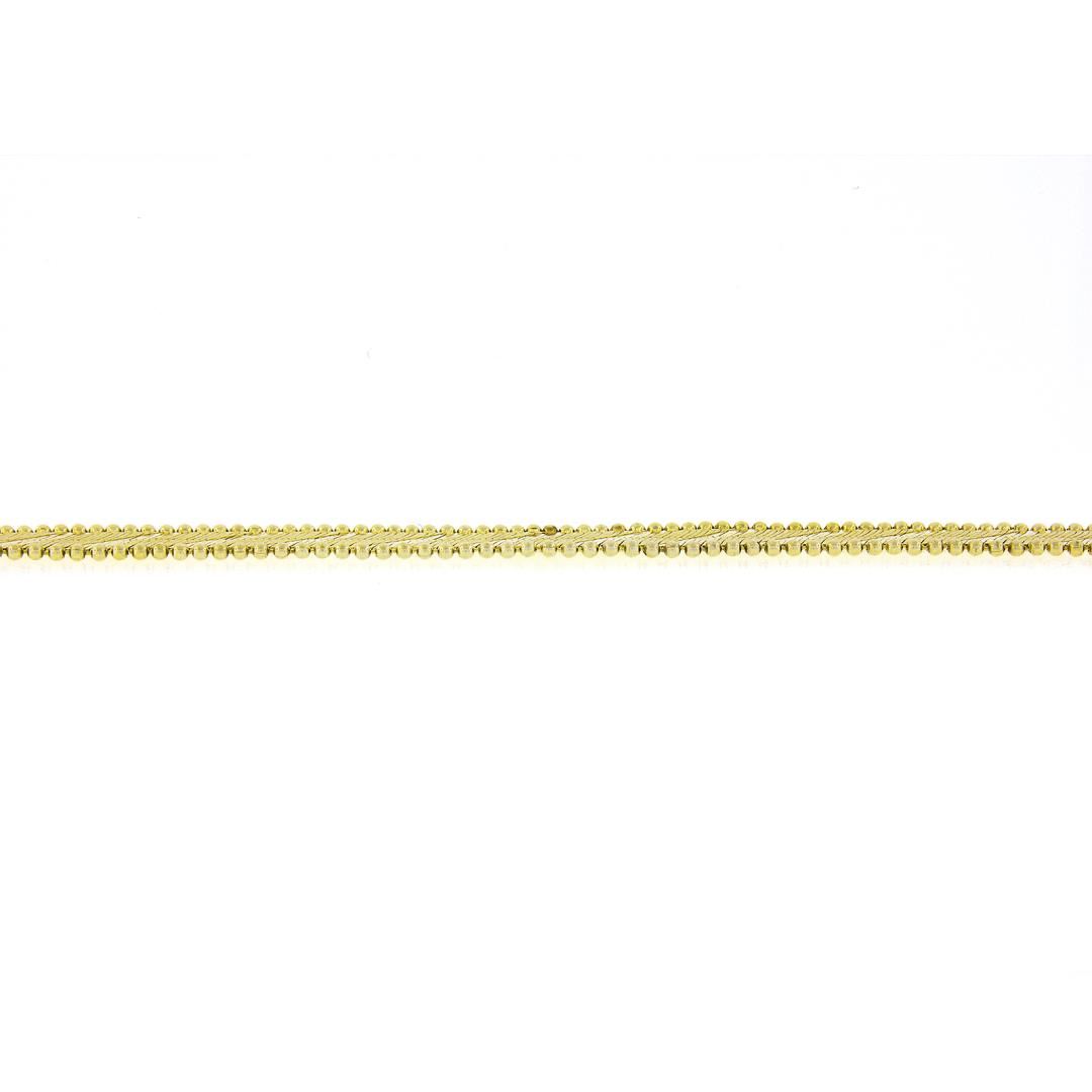 A solid 14k yellow gold flat & beaded link necklace. It weighs a total of 18.83 grams, measures 9.1mm wide, and measures 17 inches in length.