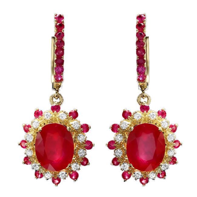 : 14k Yellow Gold / Total Item: 8.01 grams / Country Made: United States / / Main Stone: Ruby / Color: Red / Carat Total: 8.01 / Treatment: Filling / Clarity: Type 2 / Cut: Very Good / / Secondary Stone: Diamond / Carat Total: 0.61 / Treatment: None / Color Grade: H - I / Clarity: SI1 - SI2 / Cut: Very Good / / Side Stone: Ruby / Color: Red / Carat Total: 1.41 / Treatment: None / Clarity: Type 2 / Cut: Very Good /