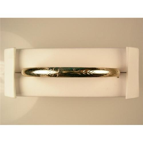 14k Yellow Gold Bangle Bracelet 3/16 inch wide. Opens so you can slip it on easily. Florentined brushed gold finish - brand new condition.