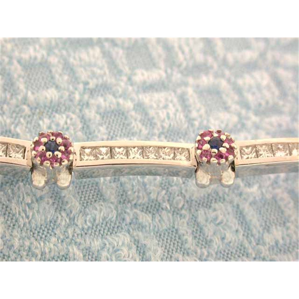 14k Gold Bracelet with Diamonds - 0.40 carats, G color and VS clarity and Sapphires. The length is approximately 7 inches long and weighs 18.58 grams