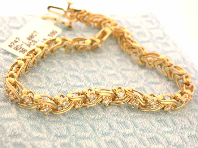 14k Gold Bracelet w/ Diamonds - 1.00 carat, 36 pieces, G color and VS clarity. Approximately 7 inches long and weighs 15.59 grams